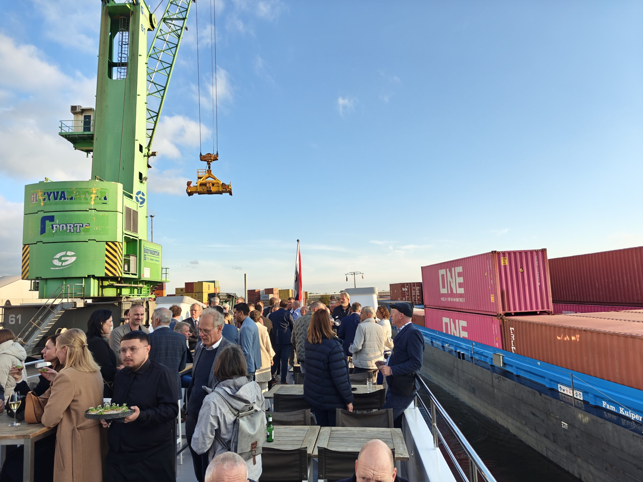 Op 26 september kwamen collega’s, partners en relaties samen in Westdorpe voor een feestelijke jubileumdag. Vlaeynatie opende officieel het nieuwe warehouse en vierde het 180-jarig bestaan én 10 jaar in Zeeland. Na de opening stapten de gasten aan boord voor een boottocht over het Kanaal Gent-Terneuzen. Volgens Tim Borteel was het een avond die recht deed aan de rijke geschiedenis én de toekomstgerichte visie van het bedrijf: “Met dit jubileum eren we onze 180-jarige geschiedenis en ons 10-jarig bestaan in Westdorpe, maar we kijken vooral vooruit. Samen met onze partners willen we blijven bouwen aan duurzame logistieke oplossingen.”